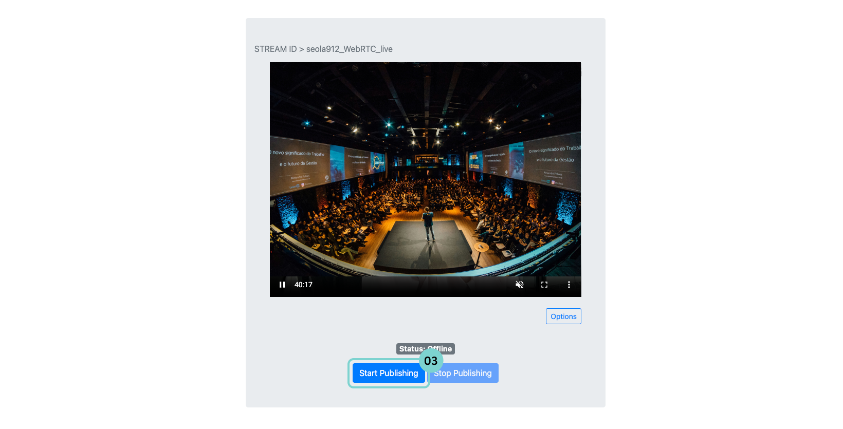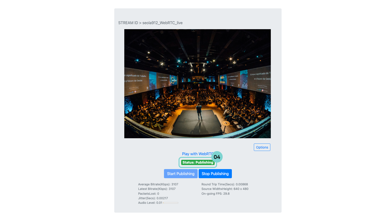 4. 방송이 시작되면, Status: Publishing으로 바뀌면서 활성화 되었음을 확인할 수 있습니다.