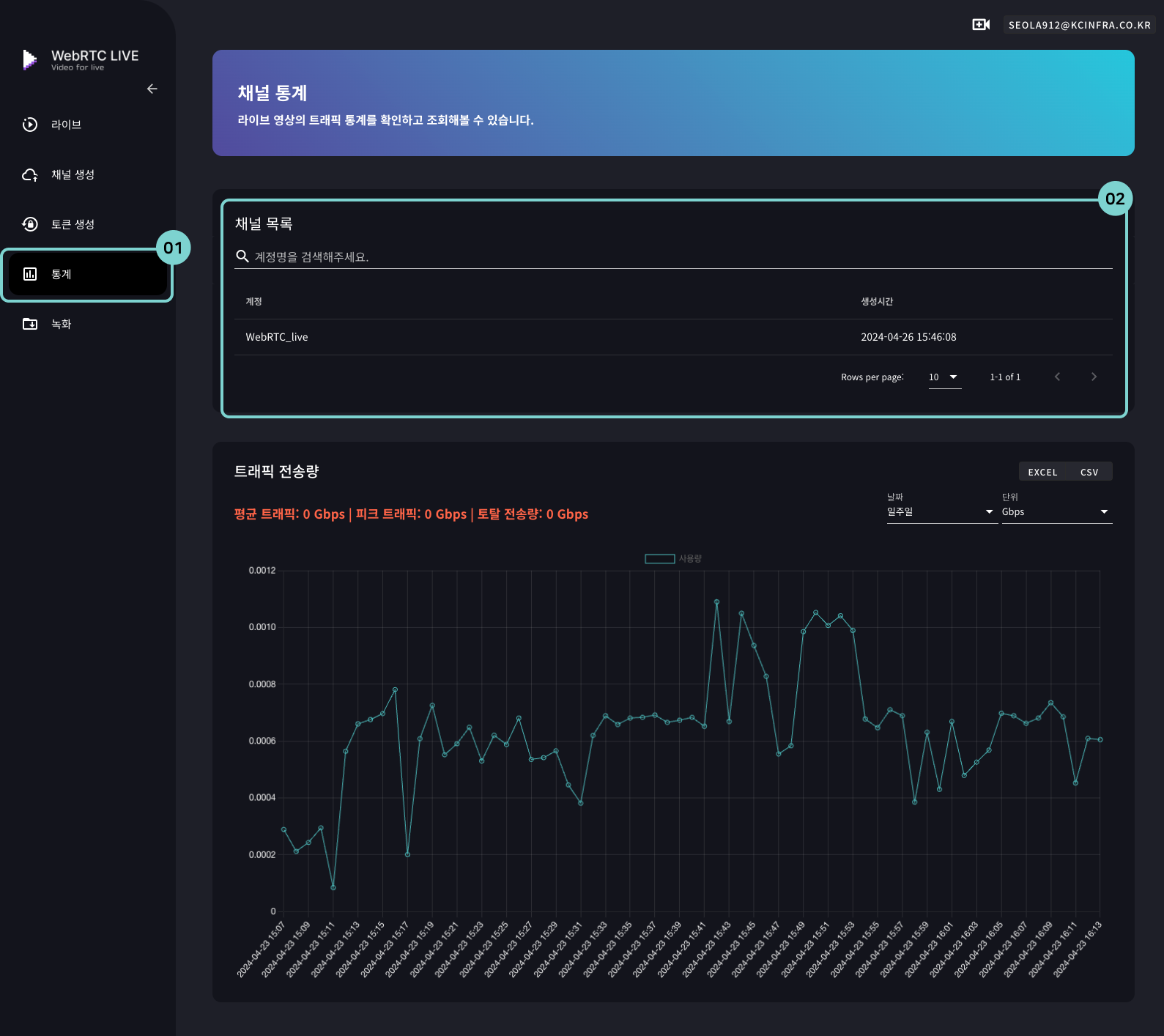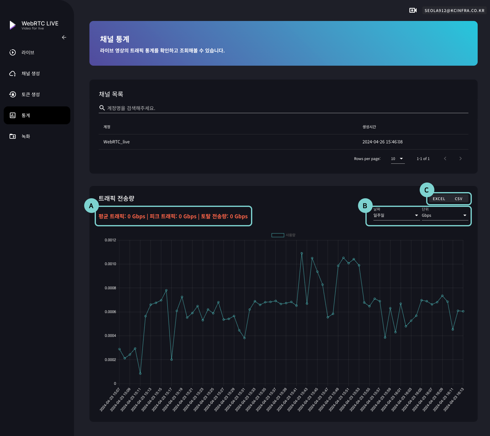 A. 트래픽 요약을 확인할 수 있습니다. 과금은 토탈 전송량에 따라 측정 됩니다.